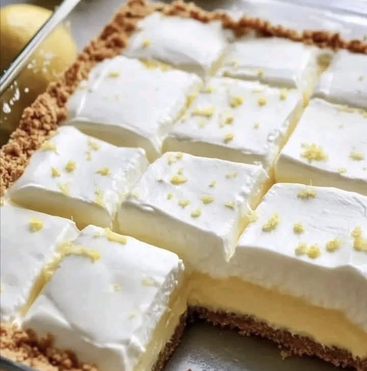 8. Assemble and Garnish: Once the lemon filling is firmly set, gently spread the whipped cream topping evenly over the lemon layer.
