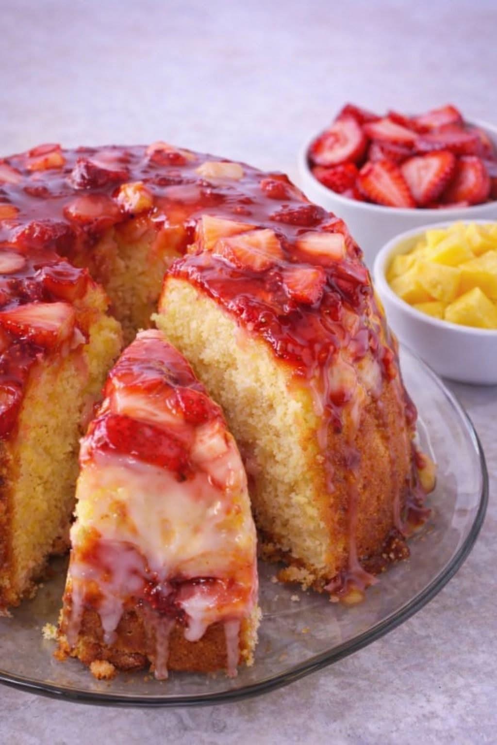 · The Secret to Evenly Distributed Fruit: Toss your chopped strawberries and drained pineapple in about a tablespoon of flour before folding them into the batter. This simple trick coats the fruit and prevents it from sinking to the bottom of the pan during baking .