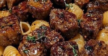 Garlic Butter Steak Bites & Creamy Parmesan Shells