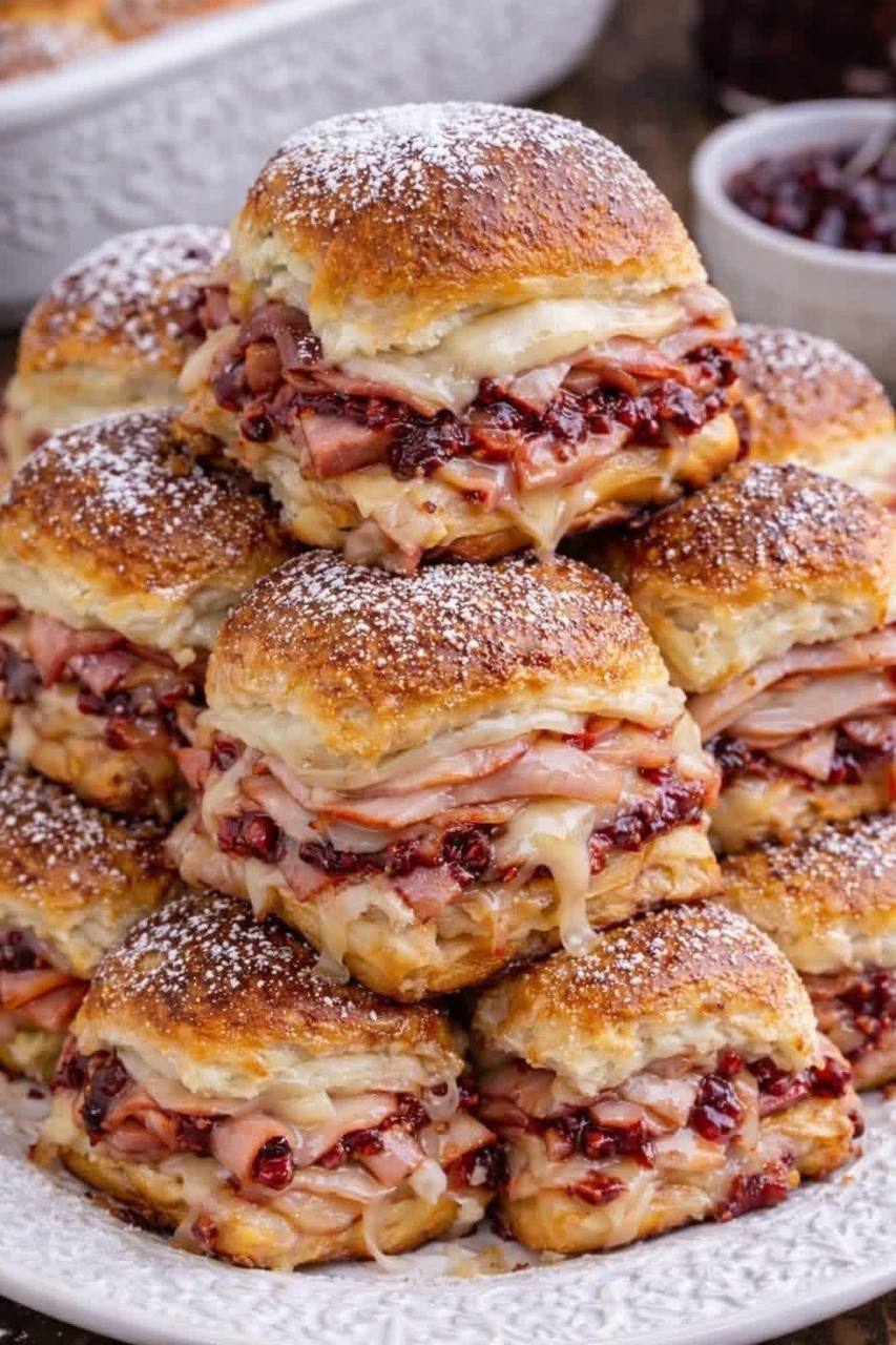 What makes these Monte Cristo Sliders truly special is their incredible balance of flavors and textures. Each bite offers the salty goodness of ham, the creamy richness of melted Swiss cheese, and a subtle sweetness that comes from a touch of cranberry sauce and a dusting of powdered sugar. The soft, slightly sweet Hawaiian rolls become beautifully golden and tender after being bathed in an egg wash and baked, creating a comforting, handheld delight that’s both elegant and utterly satisfying. They’re a fantastic way to enjoy a gourmet sandwich experience in a more approachable, party-friendly format.